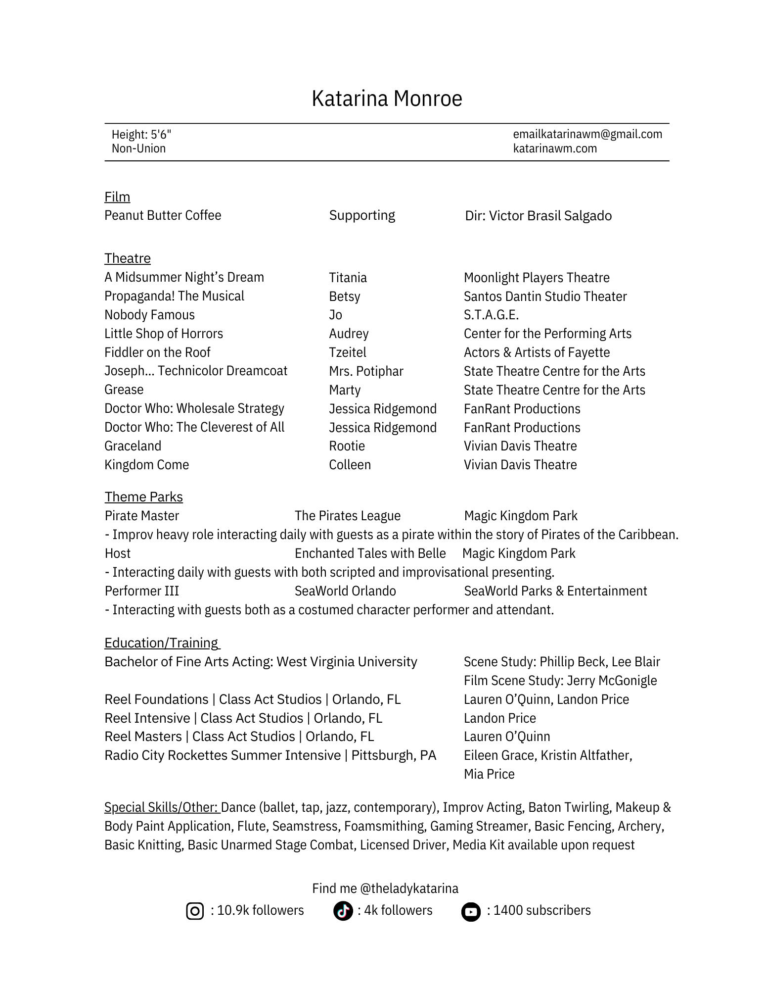 Hi there!I'm Katarina - an Orlando based actor, cosplayer, and designer. Thanks for visiting!